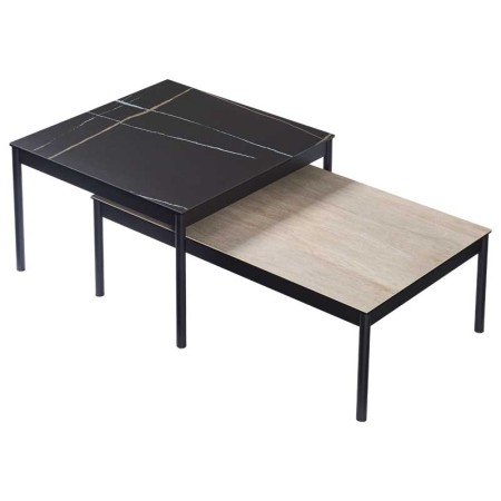 Habillez votre intérieur d'un mobilier moderne et design. Découvrez dans notre gamme mobiliers les tables basses BORNEO Graph Arabescato. Cette ensemble de tables basses donnera sans aucun doute un aspect unique, moderne et chaleureux à votre salon grâce aux choix des colories contrastées qui habille les plateaux. Le meuble est constitué d'un châssis en métal laqué époxy noir, avec dessus en céramique PM KL168 Graph / GM TL45 Arabescato de 3mm sur verre trempé 6mm.