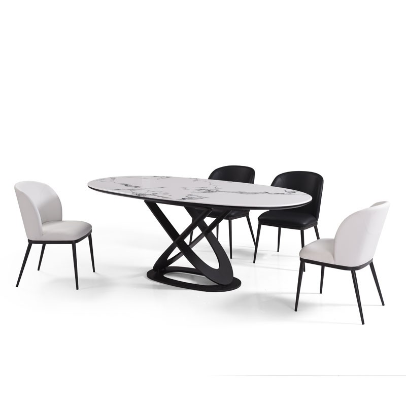 Faites de votre salle à manger un lieu de convivialité. Découvrez dans notre gamme la Table repas LAETITIA qui vous séduira par son piétement croisé en U et l'aspect matière de sa pierre Yunshan subtilement marbré de noir. Généreuse, elle permet d'accueillir 8 à 10 convives. Piétement et châssis en métal laqué époxy gris anthracite, plateau en pierre naturelle avec effets cristal avec bords arrondis 11mm Yunshan collé sur du MDF laqué noir